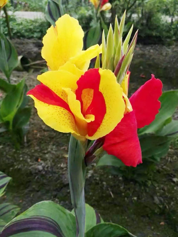 粉美人蕉(学名:Canna glauca L.):是一种球根草本植物。根茎延长,株高1.5-2米;茎绿色。叶片披针形;总状花序疏花,单生或分叉,稍高出叶上;苞片圆形,褐色,花黄色,**点;有多种园艺栽培品种,颜色从粉、橙红色及具带红色斑点等。花期:夏、秋。