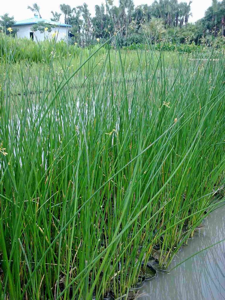 水葱(学名:Scirpus validus Vahl ),匍匐根状茎粗壮,具许多须根。秆高大,圆柱状。叶片线形。苞片1枚,为秆的延长,直立,钻状,常短于花序,少数稍长于花序;长侧枝聚繖花序简单或复出,假侧生;小穗单生或2-3个簇生于辐射枝顶端,卵形或长圆形,顶端急尖或钝圆,具多数花;鳞片椭圆形或宽卵形,顶端稍凹,具短尖,膜质;雄蕊3,花药线形,药隔突出;花柱中等长,柱头2,罕3,长于花柱。小坚果倒卵形或椭圆形,双凸状,少有三稜形,长约2毫米。花果期6-9月。